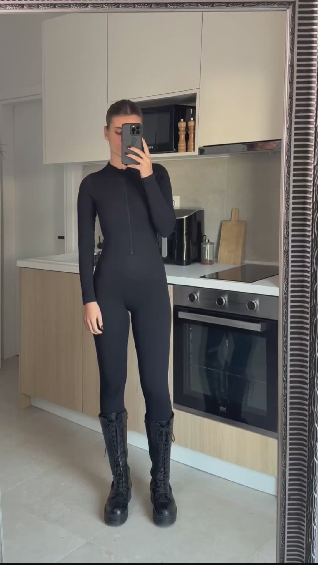 Ολόσωμη καφέ φόρμα, με πολύ ελαστικότητα και φερμουάρ στο στήθος!